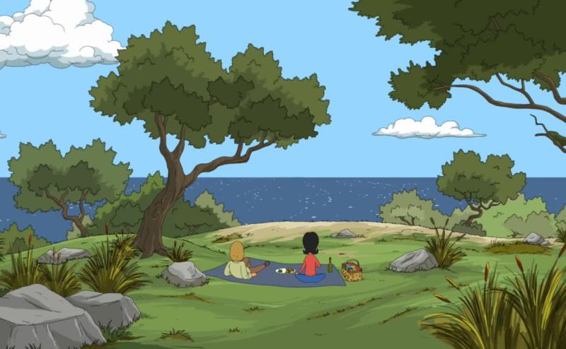 There might be a shady meadow over that hill.