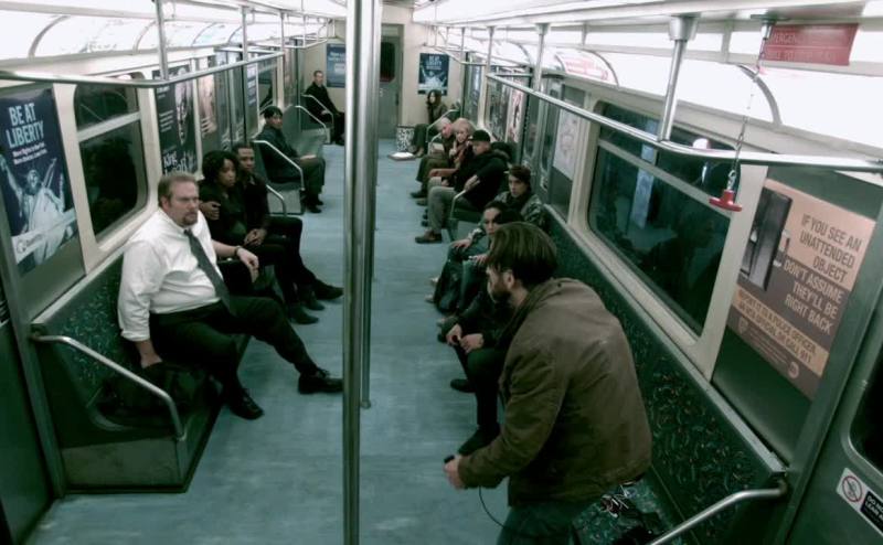 into a subway car full of people,