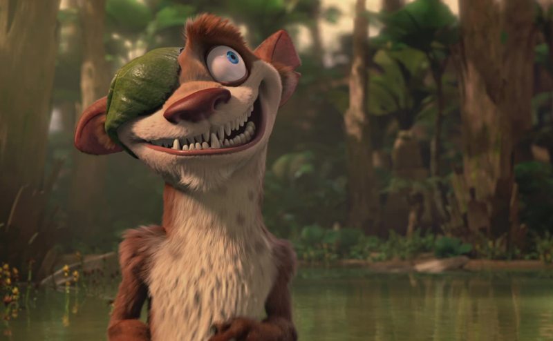 our friend is taken by a dinosaur.