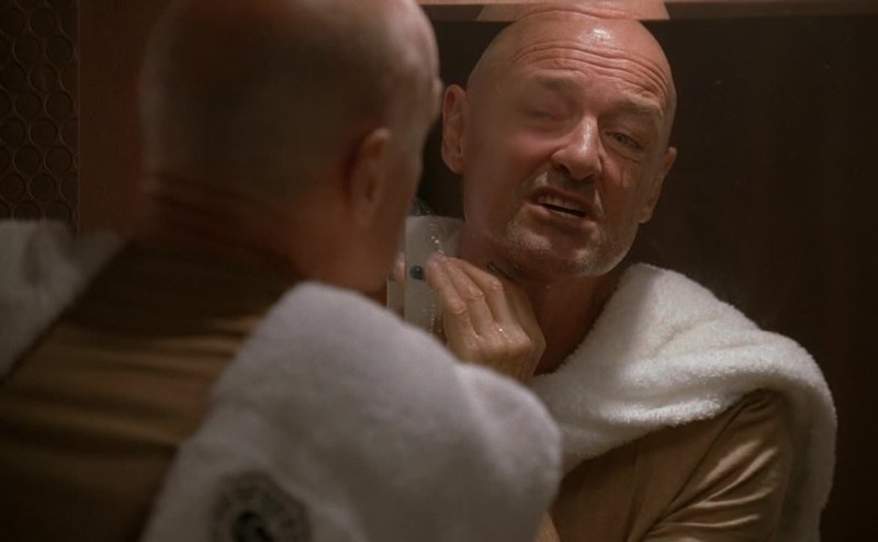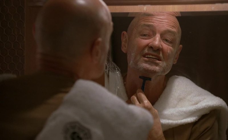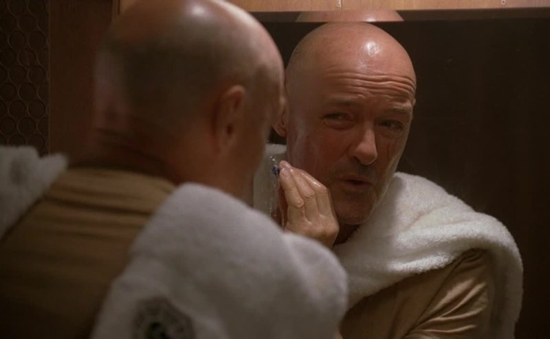Man's got no shaving cream, he's got to improvise.