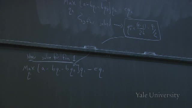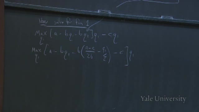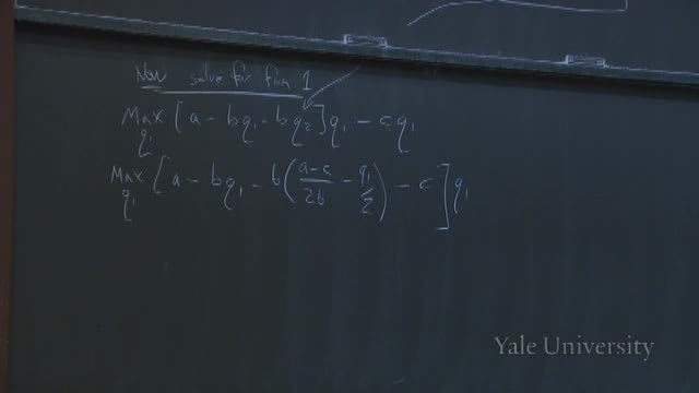 So we're going to get max Q1, [A - B Q1--B [[A - C]/2B - Q1/2] - C] Q1