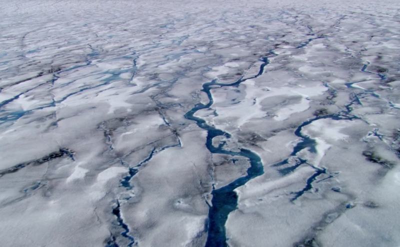 On Greenland's surface, lakes are appearing on the landscape.