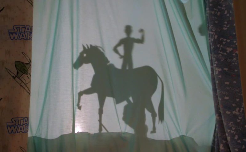 * A light hits the gloom on the grave *