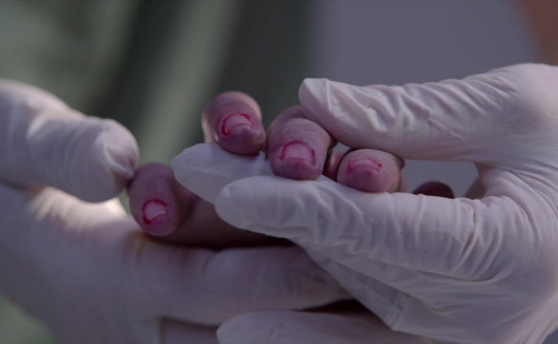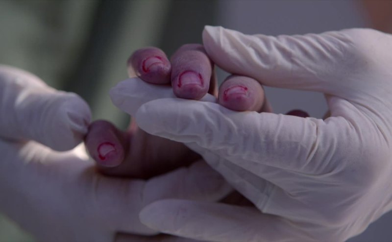 Fingernail polish was removed.