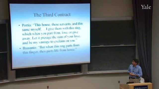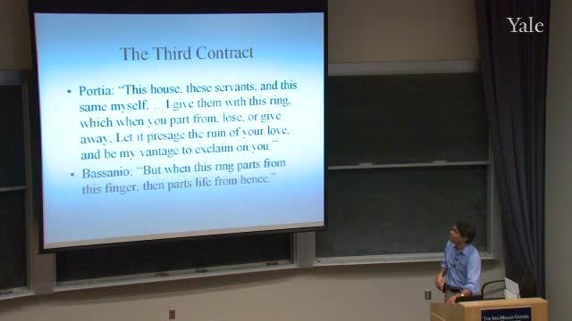 Bassanio picks the lead one and gets her, and so she becomes the