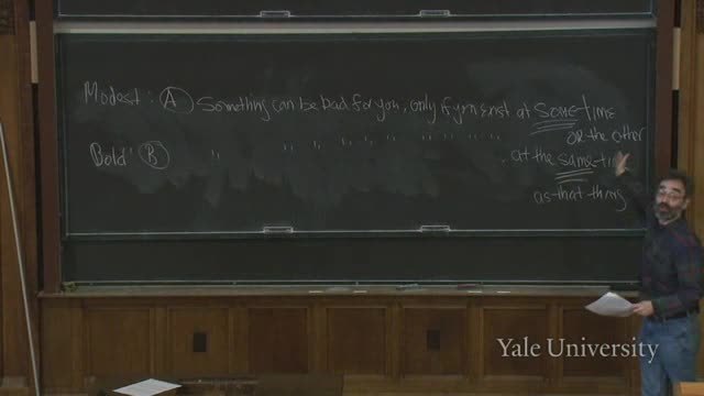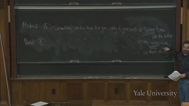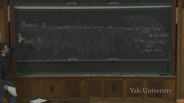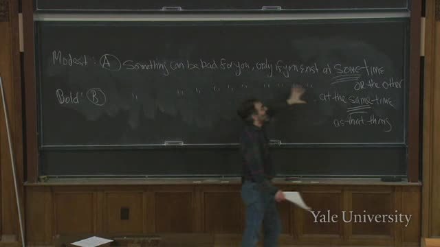 It says something can be bad for you only if you exist at the very same time as