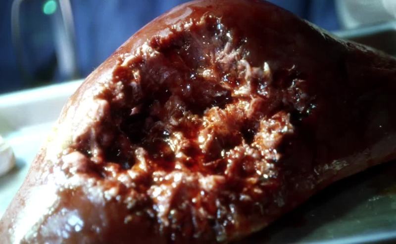 Bullet entered the abdomen, penetrated the liver.