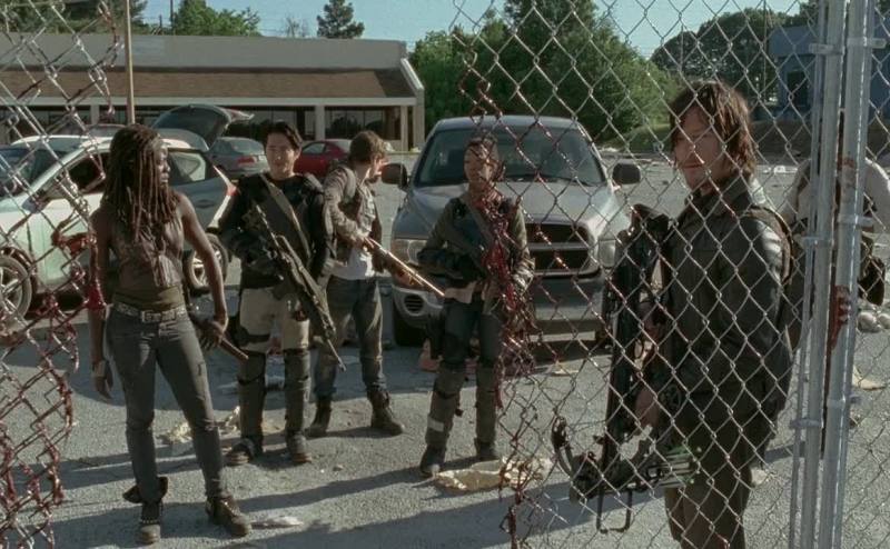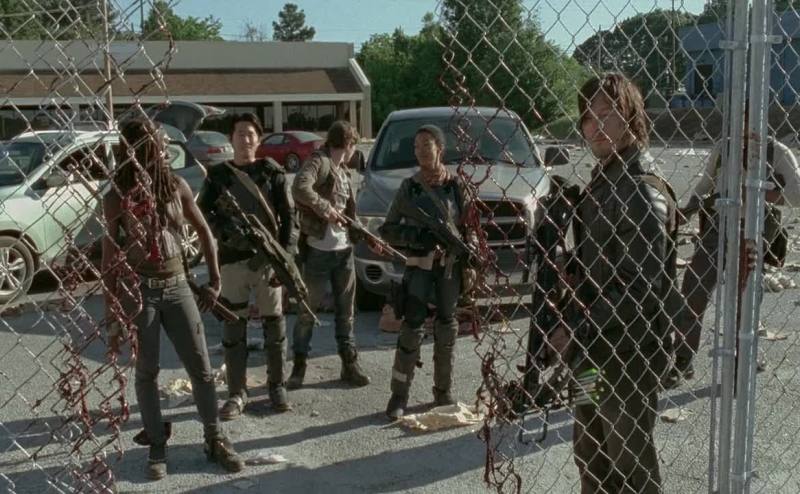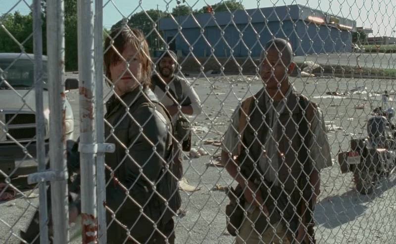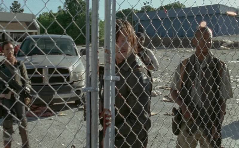 there was a bunch of walkers behind this chain-link
