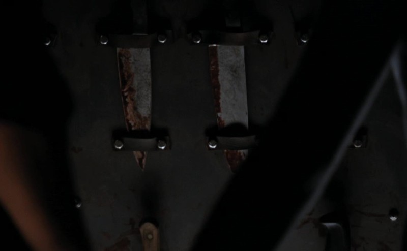 Manacles and bloody instruments of torture.