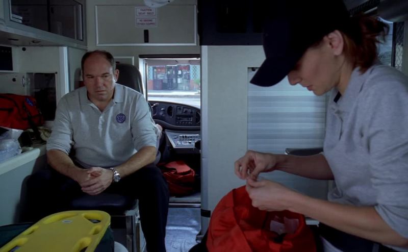 stuffing me in the back of an ambulance,