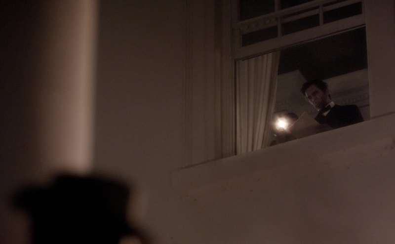 Lincoln speaks from the north portico of the White House.