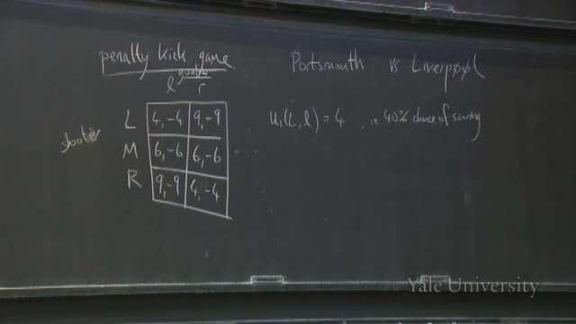 The payoff for the shooter is his probability of scoring and the payoff