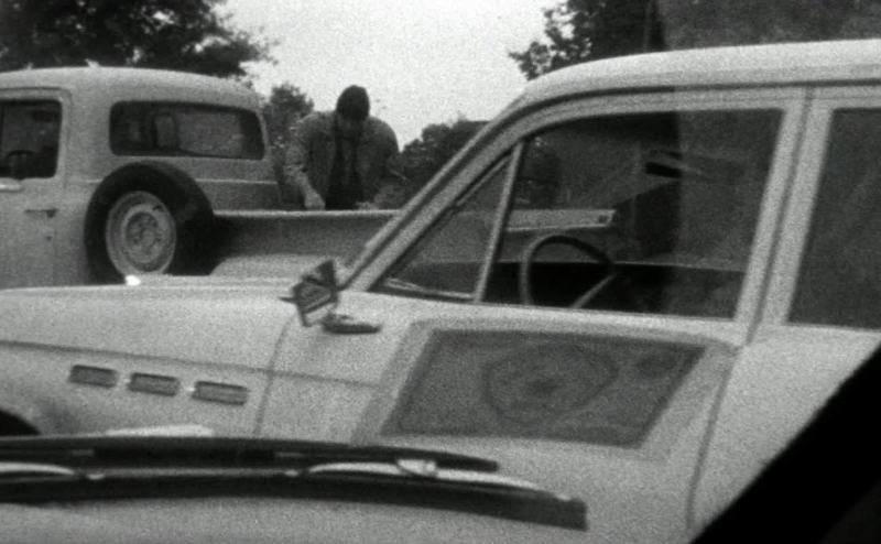 I stopped alongside a green pickup truck.