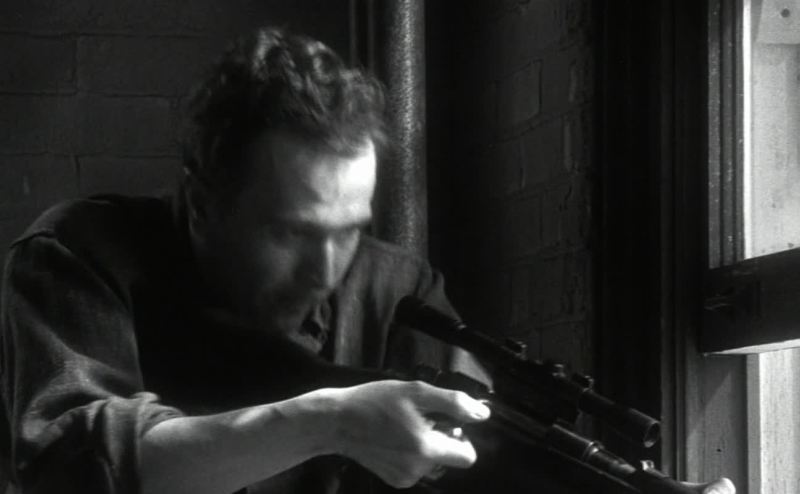 下文wipes fingerprints off the rifle, stashes it on the other side of the loft